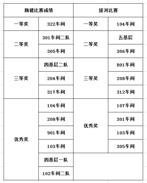 踢毽比賽為限時(shí)賽,采取2分鐘計(jì)時(shí),每隊(duì)5人,同時(shí)在各自1.5米的范圍內(nèi)踢毽, 5人的總體成績?yōu)閳F(tuán)隊(duì)比賽成績。比賽中,毽子在參賽者腳上翻飛起落,單腳踢,左右腳對(duì)踢,內(nèi)踢外翻,花樣不斷,不時(shí)贏得現(xiàn)場陣陣喝彩,整場比賽場面緊張激烈。經(jīng)過比拼,最終322車間代表隊(duì)獲得踢毽比賽一等獎(jiǎng)。